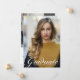 Graduate is written in simple white script over your senior portrait photo for a modern graduation announcement card. Customize with your name and high school or university class of 2026 under the cursive typography and add your personal details on the back of these contemporary, minimalist graduation announcements.