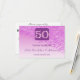 The front card features falling Pink Glitter on a pink gradient with shiny stars. The gold and Pink glitter Number is unique to announce the celebration of her 50th Birthday.