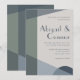 Elements: abstract geometric shapes, color blocks, chic sans serif font for names, understated serif fonts for details. Colors: sage, mint, pistachio, evergreen, dusty blue, botanical, navy, evening, midnight,cetacean, parchment, light grey, platinum. Themes: modern, minimalist, abstract, clean, cheerful, cool tones, understated, boho, scandi, contemporary, industrial. Collection: Chic Abstract Geometric Sage Navy Dusty Blue Wedding Collection Product Type: Classic Invitation - Vertical