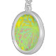 I chose gold plated so that the metal would not react with my skin oils and perspiration. But, I changed the necklace from the gold plated one to a sterling silver. My skin cells will tarnish the silver. But it will not look as bad if some portion of the gold plated necklace somehow became compromised. Zazzle did a find job turning the picture into a pendant for me. As you can see, the colors and the printing of the final product, match the preview. The picture I took is not very clear. But I am pleased with the product I received.