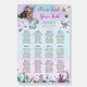 Whimsical mermaid seating chart sign board, featuring a beautiful African mermaid, adorable under the sea creatures and colorful corals against rainbow deep ocean backdrop. Personalize it with your details easily and quickly, simply press the Edit Using Design Tools button to further re-arrange and format the style and placement of the text. Perfect for baby shower, birthday party, baptism, christening and many more occasions. Matching items available in store! (c) The Happy Cat Studio.