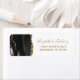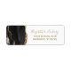 The left-hand edge of this elegant modern wedding invitation return address label features a black watercolor agate border trimmed with faux gold glitter. The customizable text combines gold-colored handwriting and copperplate fonts on a white background.