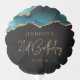 This 21st birthday party balloon features a watercolor image of an agate geode in shades of teal blue with faux gold glitter highlights. The words "21st Birthday" appear in faux gold glitter in a decorative modern handwriting font. Customize it with the name of the honoree and the date in gold colored text.