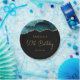 These chic, glamorous 50th birthday party paper plates feature a watercolor image of an agate geode in shades of teal blue with faux gold glitter highlights. The words "50th Birthday" appear in gold-colored decorative modern handwriting font. Add the name of the honoree and the date in gold-colored sans serif text.