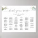 Elegant alphabetical style wedding seating chart sign with beautiful "Find your seat" phrase in modern handwritten calligraphy and delicate watercolor Eucalyptus branches with leaves. Use our 6 columns to add your guest names, and if adjustments are needed, you can select "Edit using Design Tool" with the button located at the end of the template text boxes and increase or reduce the font size to make room for more or less guests, as well as select the column and move their position to accommodate your amount of guest correctly. IMPORTANT NOTE: This sign comes in poster-like paper type and needs to get framed or glued/stapled to an inexpensive MDF or foam board to display. In case you are looking for a ready for display Foam board sign, this sign is already available in foam boar presentation as well. Part of our "Minimal and Graceful Eucalyptus Wedding" collection. Sign in demo image on the stand in 28" x 22"