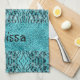 This Kitchen Towel features an chic animal print in blue. Beautiful feathers, glitter, cool pattern! Personalized Kitchen Towel for her. Custom text and glitter.