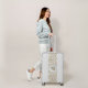 A stylish tan and white wild animal print and your chic initial monogram decorate this suitcase personalized with your monogram initial. Choose the color of your suitcase shell, the handle, wheel covers and bumpers. The perfect personal gift or accessory for any occasion! MATCHING luggage tag, drawstring bag, cell phone case and more in our travel collection.