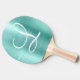 Chic Aqua Brushed Metal White Monogram Ping Pong Paddle