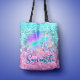 Chic Aqua Pink Unicorn Glitter glam monogram Tote Bag