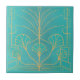 Art Deco water spout fountain tile with faux metallic & slight glossy effects in gold and turquoise or aqua blue. Perfect as a trivet or for a stylish retro bathroom tiling home decor. Designed by Anne Londez.