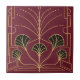 Art Deco water spout fountain tile with faux metallic & slight glossy effects in gold and black on a cherry red background. Perfect as a trivet or for a stylish retro bathroom tiling home decor. Designed by Anne Londez.