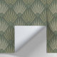 Enhance your home decor with this chic Art Deco Peel & Stick wallpaper, featuring a sophisticated geometric design in a soothing sage green palette. The pattern showcases elegant fan and diamond shapes in soft hues of sage, olive, and beige, embodying the timeless allure of the Art Deco era. Perfect for creating an accent wall or updating any room's aesthetic, this wallpaper adds a touch of glamour and modernity to your space. Crafted from high-quality, repositionable material, it ensures easy application and removal, making installation hassle-free and straightforward.