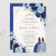 Chic Baby Blue Royal Blue Floral Twins Quinceañera Invitation