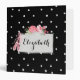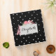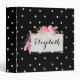 Add your name to this pretty black binder with white polka dots. Lovely details include a frame surrounding your custom text with pink roses and ballet slippers