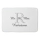 CHIC BATH MAT_"Mr & Mrs" BLACK TEXT ON GRAY INITIAL. BLACK NAME. SOLID WHITE BACKGROUND. OR DIY
