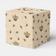 These Chic Bees and Gold Crown Queen Bee Favor Boxes feature hand-drawn buzzing bees amidst royal gold crowns against an elegant cream background.