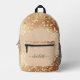 Chic girly backpack featuring beige-gold glitter and your name in a trendy script with swashes on the front pocket.