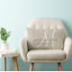 Chic Beige Linen White Monogram Wedding Keepsake Lumbar Pillow