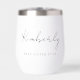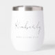 Give the best sister ever a gift she will love with this chic custom thermal wine tumbler, showcasing her name monogrammed in a stylish calligraphy script and "Best Aunt Ever" in elegant typography. If needed, edit in the design tool to increase or decrease the script size for longer or shorter names.