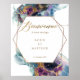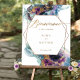 Elegant Wedding welcome sign in French with exquisite watercolor stains in cosmic galaxy hues with dainty stars cascading behind a golden geometrical hexagon featuring a welcome message with couple names. Ability to change the text to suit other events. Watercolor stains in a blend of blue, navy, teal, turquoise, purple, fuchsia, and golden hues. Modern handwritten calligraphy details. Available in many size options. "IMPORTANT NOTE: This sign is in premium poster paper style, easy to frame or glue/staple to inexpensive MDF or foam board for display. If you prefer this sign prepared for display already on a foam board, please follow these easy steps: on this sign product page, scroll up, until you see a section with images called "Transfer design to a product". Use the arrow on the images to look at all the options, until you reach the "Foam Boards" option. Click on it, and it will transfer the design into a foam board for you. Initially, sometimes it transfers the design into a very big foam board size, nevertheless, you can change the sign into the size you need right there on the product page and even see how it looks already in a stand. When you add this design to your shopping cart, it will tell you the back side is in black. Don't worry about it, as this only means that the back of the sign will be white. If you need help, please send me a message and I'll get back to you as soon as possible".Part of our "Mystic Garden Celestial" collection with a variety of coordinating products available. Dimensions of sign in demo photo with stand: 18" x 24"