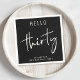 Elevate their 30th birthday party with these chic black napkins featuring "hello thirty" in a blend of simple white lettering and a modern white script.