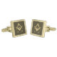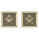 Stylish gold square and compass Masonic symbol personalized cufflinks with an elegant patterned background.
