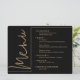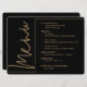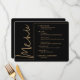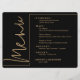 A black and gold dinner menu card features your menu choices in chic lettering, perfect for a modern wedding reception, wedding rehearsal dinner, anniversary party or any special event with a sit-down dinner. Easily personalize with your dinner menu and details. MORE colors and sizes in our collection.