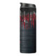 Chic black and red and silver drippings glitter monogram thermal tumbler. A girly and trendy modern thermal tumbler. It makes the perfect sweet 16 birthday, wedding, bridal shower, anniversary, baby shower or bachelorette party gift for someone that loves glam luxury and chic styles. Whether for valentines day, Christmas or any occasion in general this thermal tumbler will make a great gift idea for any girl or woman who loves modern sparkly elegance. PLEASE NOTE: These are flat printed graphics - no real glitter, jewels or raised parts.