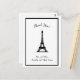 This chic design features a black image of the Eiffel Tower on a white background. The words "thank you" and your names appear on the front of the postcard in elegant black French lettering. A personalized message and your return address go on the back (or you can delete if you would prefer the back to be blank). An easy way to add the style of Paris. An especially good choice for your wedding thank you cards for a Paris or French theme wedding or destination wedding.