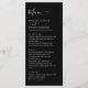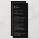 This chic black and white minimalist dinner menu offers a sophisticated, modern touch to your wedding reception. Featuring white script on a bold black background, this design is perfect for couples who want to make a statement with their table decor. The sleek and stylish look highlights your dinner selections in a refined way, making it a standout addition to any celebration. Matching items available.