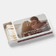 Modern wedding matchboxes featuring a simple yet elegant design with your two initial monogram in a contemporary script font along with your names and wedding date over your favorite photo.