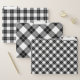 Chic black and white plaid pattern adds a sophisticated accent to your office. Black, white, and grey diamonds or squares form bold checked plaids with thin lines of white running through the dark colors. The black and white pattern comes in 3 sizes across the file folders: small diagonal, large diagonal, and medium square buffalo plaid. Each folder has the same pattern on its inside also.