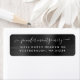 This elegant return address label features your name in modern white script with your return address for your to personalize on a background of faux black brushed metallic texture.