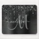 Chic Black Dripping Glitter Metal Monogram Mouse Pad