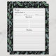Here's the perfect double-sided recipe page designed to coordinate with its matching binder. The design, both front and back, features a repeat pattern of gorgeous eucalyptus greenery sprigs, leaves, and berries in various shades of green including sage green and teal on a black background together with room for all the information you need for your recipes. Please see the accompanying collection for matching binder and other products carrying this design. If you have a design question or would like to see this design on another product, please feel free to contact me at jschmidtdesignworks@gmail.com. Design © Judith Schmidt.