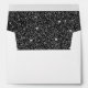 Elegant white invitation envelope, with graphics of a black glitter look, on the inside. Personalize the black return address, on the back flap.