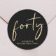 Elegant black 40th birthday party stickers for your invitations, party favors, thank you cards, etc., featuring "forty" showcased in a chic gold script.