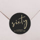 Elegant black stickers for your 60th birthday party invitations, party favors, thank you cards, etc., featuring "sixty" showcased in a chic gold script.