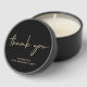 Elegant black mini candle favors for your 60th birthday party that features "thank you" showcased in a chic gold script.