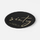 Chic black paper plates for your 60th birthday party featuring "sixty" showcased in a large gold script.