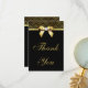 Elegant custom black and gold wedding Thank You flat cards with a chic faux gold foil chevrons pattern and glamorous shiny gold printed bow image and pretty digital diamond bling jewel on a classy black background. PLEASE NOTE: These are flat printed graphics - no real bow or raised parts. Text, background color, font and color of font can all be customized. If you need assistance customizing your product please contact me through my store. I will be happy to help. I have matching products in my store.