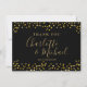 Featuring elegant gold love hearts confetti framing your thank you message and signature script names set in elegant gold typography on a black background. You can personalize with your own thank you message and names. You can also add a message on the reverse or delete the text if you prefer. A perfect way to say thank you! Designed by Thisisnotme©