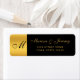 These chic custom return address labels for your wedding invitations feature an elegant faux gold calligraphy script for your monogrammed initials, names, and return address to personalize on a simple black background with faux gold border. Best of wishes for your wedding and marriage! Designed by Susan Coffey.