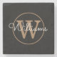 Chic Black Gold Monogram Script Name Stone Coaster