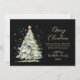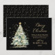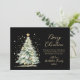 Chic Black Gold Script Watercolor Christmas Tree Holiday Card