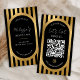 Chic Black & Gold Stripes Social Media QR Code Business Card