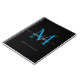 Modern Girly Black Ocean Blue Monogram Script Name Initial Notebook
