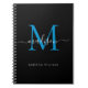 Chic Black Ocean Blue Monogram Script Name Initial Notebook