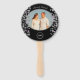Simple, elegant, chic black wedding program hand fan with abstract silver gray fish pattern and photo. Perfect choice for contemporary summer beach weddings.