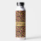 Chic Black Pink Gold Leopard Print Personalized Water Bottle